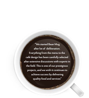 Our carefully designed menu is sure to take your breath away with the rich aroma of our finest coffee and mouth-watering delicacies. Bean Mug is a haven for the young and old alike, a place to refresh your mind and enliven your senses.
